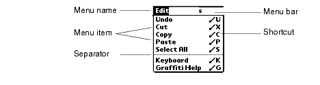 menuEvent with that menu item is generated. To support this behavior, you simply specify a shortcut character when you create a menu item resource. The default behavior of Palm OS handles this shortcut appropriately.