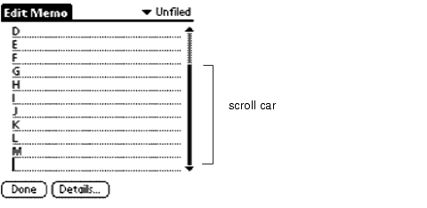 When you compile your application, the system creates the appropriate scroll bar UI object. (See the chapter "Scroll Bars" in the Palm OS SDK Reference for more information on the scroll bar UI object.)